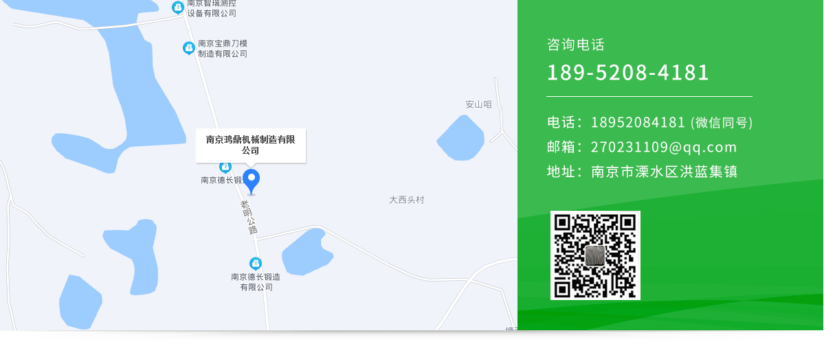 南京鴻鼎機械制造有限公司是一家生產制造綜合型技術企業。坐落于南京市溧水區洪藍集鎮,處在長三角經濟圈和南京一小時都市圈內,30公里內可達南京祿口國際機場。地理位置優越、環境優美、交通便利。公司始終堅持”以信譽求發展、以質量求生存"的發展理念,...